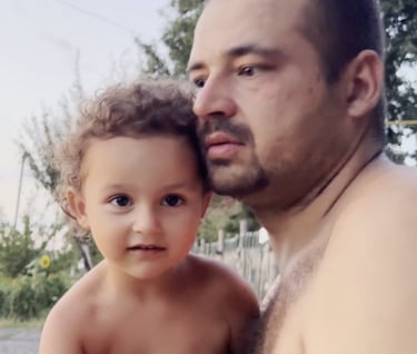 Vitalii, the Ukrainian father with Polish roots, Anna, the Ukrainian mother from Donbass, Sofia, Mark, and Maksym, the children who continue to play and laugh through chaos. One of the children, Maksym—Anna’s son from a previous marriage—was born in Donbass and has lost his documents. Without adoption, the family cannot evacuate. Still, they dream of turning their war-torn land into a strawberry field.
